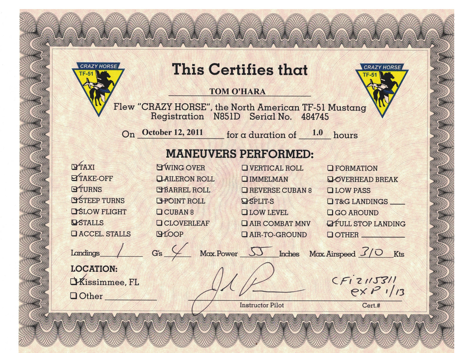 P51 Orientation Flight took place Oct. 12, 2011 from Kissimmee airport Florida.